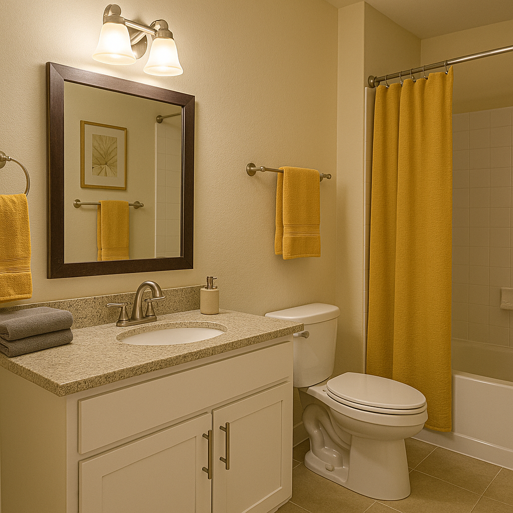 Clean, well-maintained and structured for accessibility and ease. Our shared bathrooms are regularly sanitized and kept organized to ensure comfort, safety and dignity for every resident.