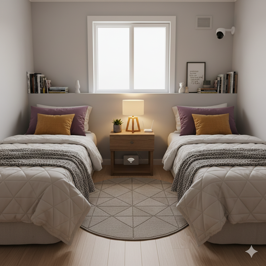 Comfortable twin beds in clean, inviting rooms designed to promote peace, privacy and restful sleep. Every space is thoughtfully arranged to help residents feel settled, supported and at home.